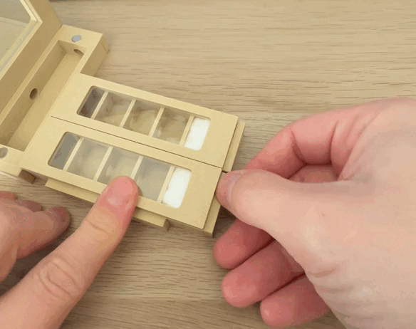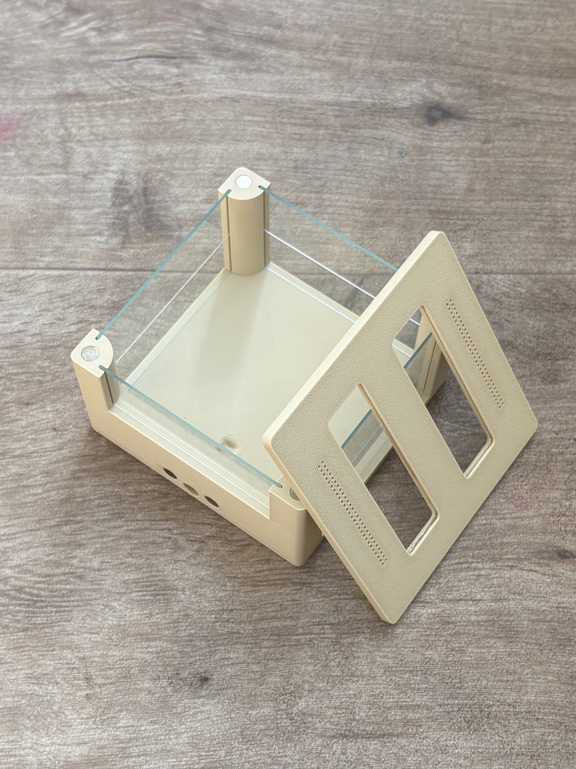 | The nest lid is designed to allow clear observation of the colony inside the nest. A microscope slide is embedded into the lid, creating a transparent window that lets you watch the ants and their brood without disturbing the colony. The glass slide is inserted during the printing process and becomes embedded directly into the lid. This makes the window stable, secure and escape-proof. For more information about how the glass slides are inserted during printing, see the section “Insert the microscope slides into the lids” below. |